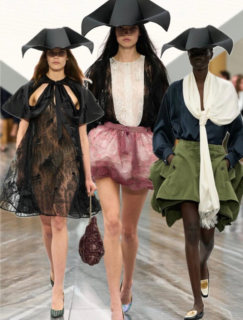 Na passarela, Anderson propôs um resgate do trabalho de grandes nomes que passaram pela Dior — de Christian Dior a John Galliano, Raf Simons e Maria Grazia Chiuri —, mas sempre sob sua ótica particular, marcada pelo olhar disruptivo. Os ícones da casa foram revisitados: a icônica jaqueta Bar surgiu desconstruída, a renda foi trabalhada em golas imponentes, os chapéus trouxeram personalidade e statement, e os sapatos Roger Vivier ganharam protagonismo ao lado de bolsas de design irreverente, que reforçam o diálogo entre tradição e inovação.